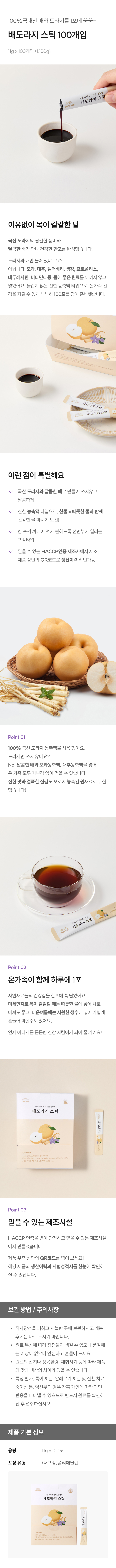 100% 국산 도라지의 쌉쌀한 풍미와 달콤한 배가 만나 건강한 한포 완성